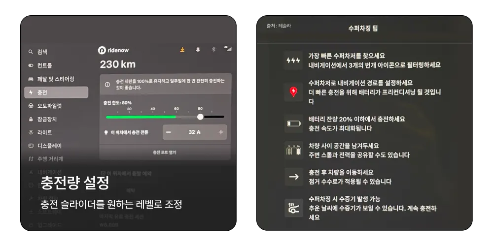 라이드나우 시승차량은 수퍼차저 혹은 데스티네이션 차저에서만 충전 가능해요.