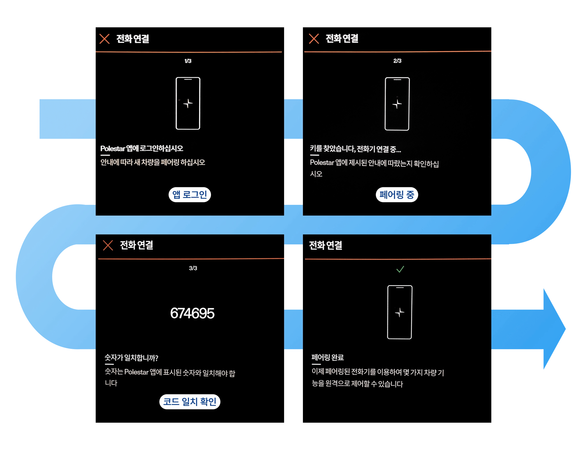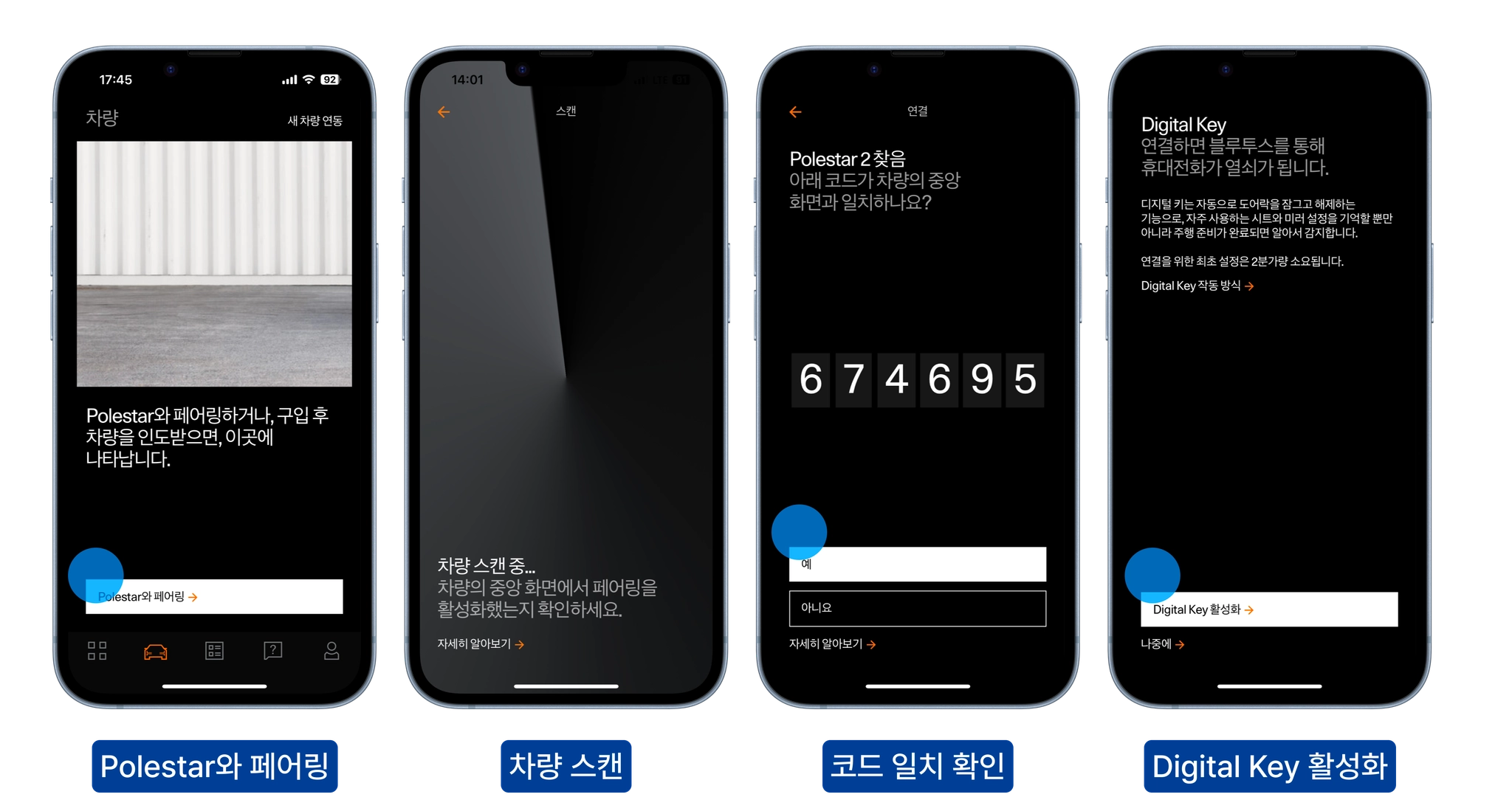 이 기능을 사용하기 위해서는 Polestar 앱과 차량을 페어링 하여, 디지털 키를 등록하여야 합니다.