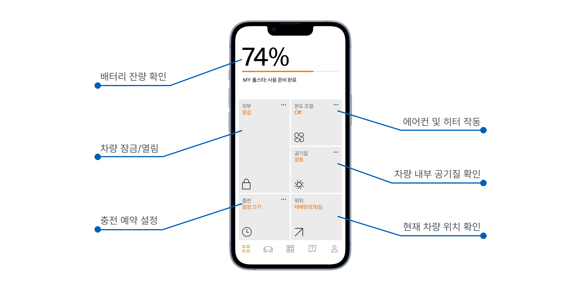 표준 키나 키 태그 없이, 앱으로 간편하게 차량을 조작할 수 있는 기능입니다.