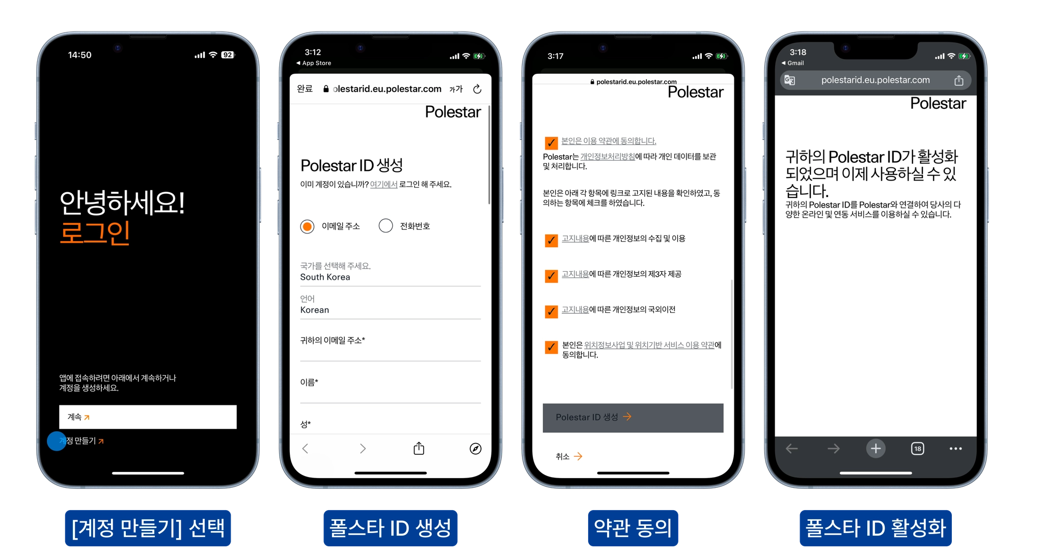 폴스타 계정이 없는 경우 : [계정만들기] 선택 후, 계정 생성