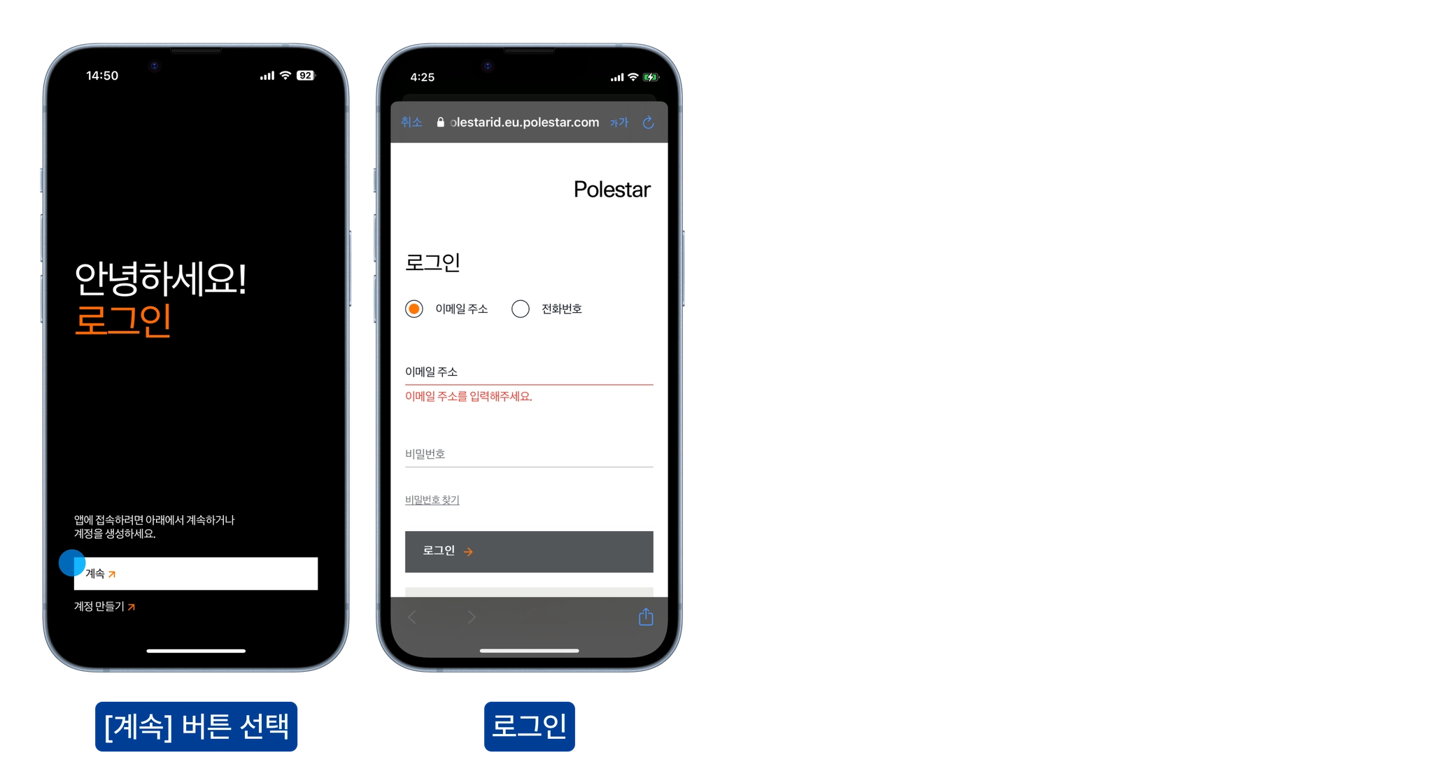 폴스타 계정이 있는 경우 : [계속] 선택 후, 로그인