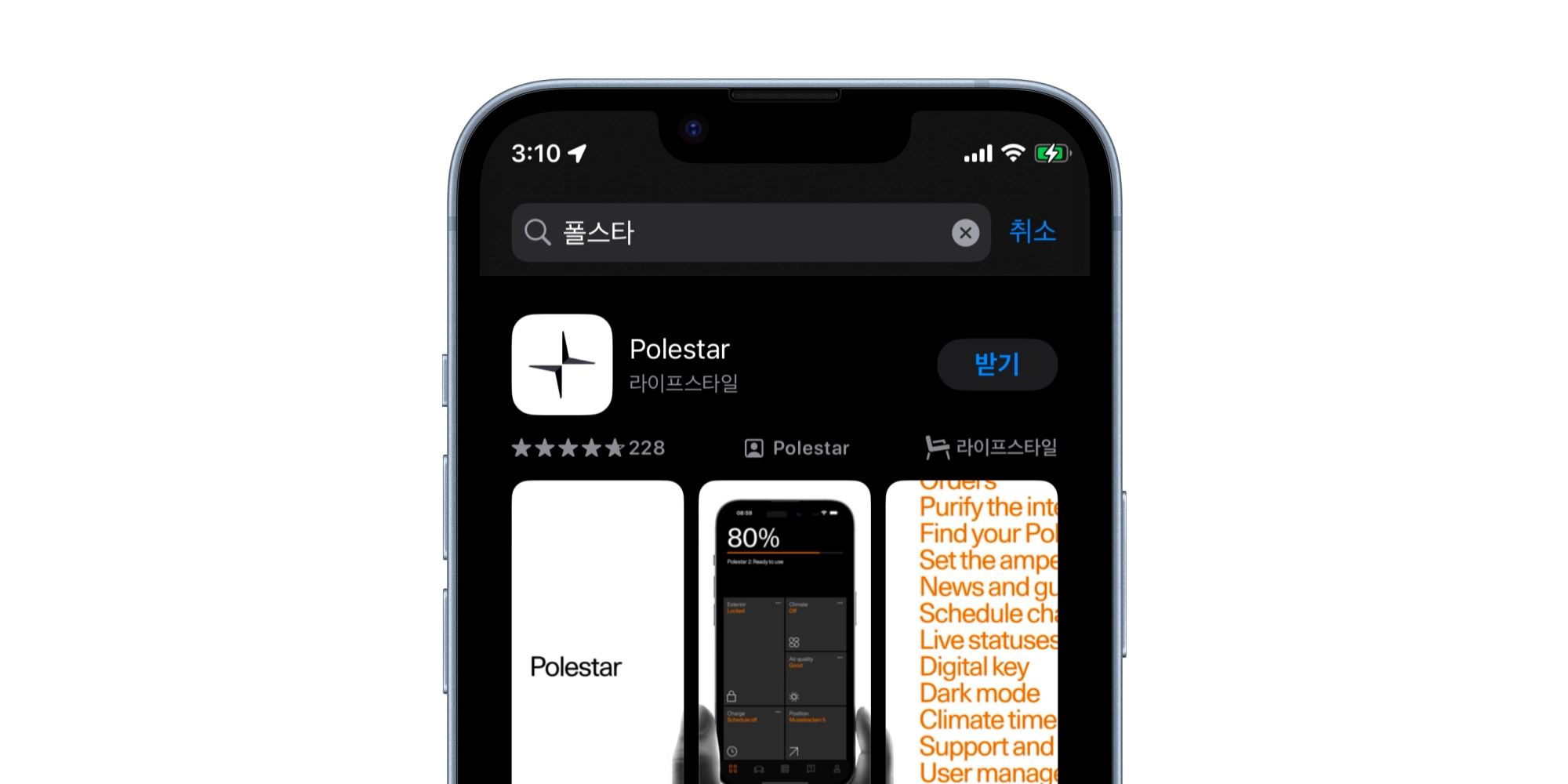 스마트폰에 설치된 폴스타 앱이 최신 버전이어야 합니다.