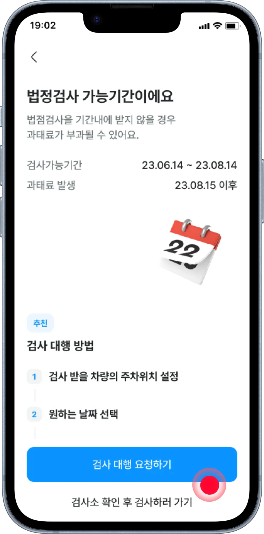 법정검사 대행 신청을 통해 간편하게 법정검사를 받을 수 있어요.